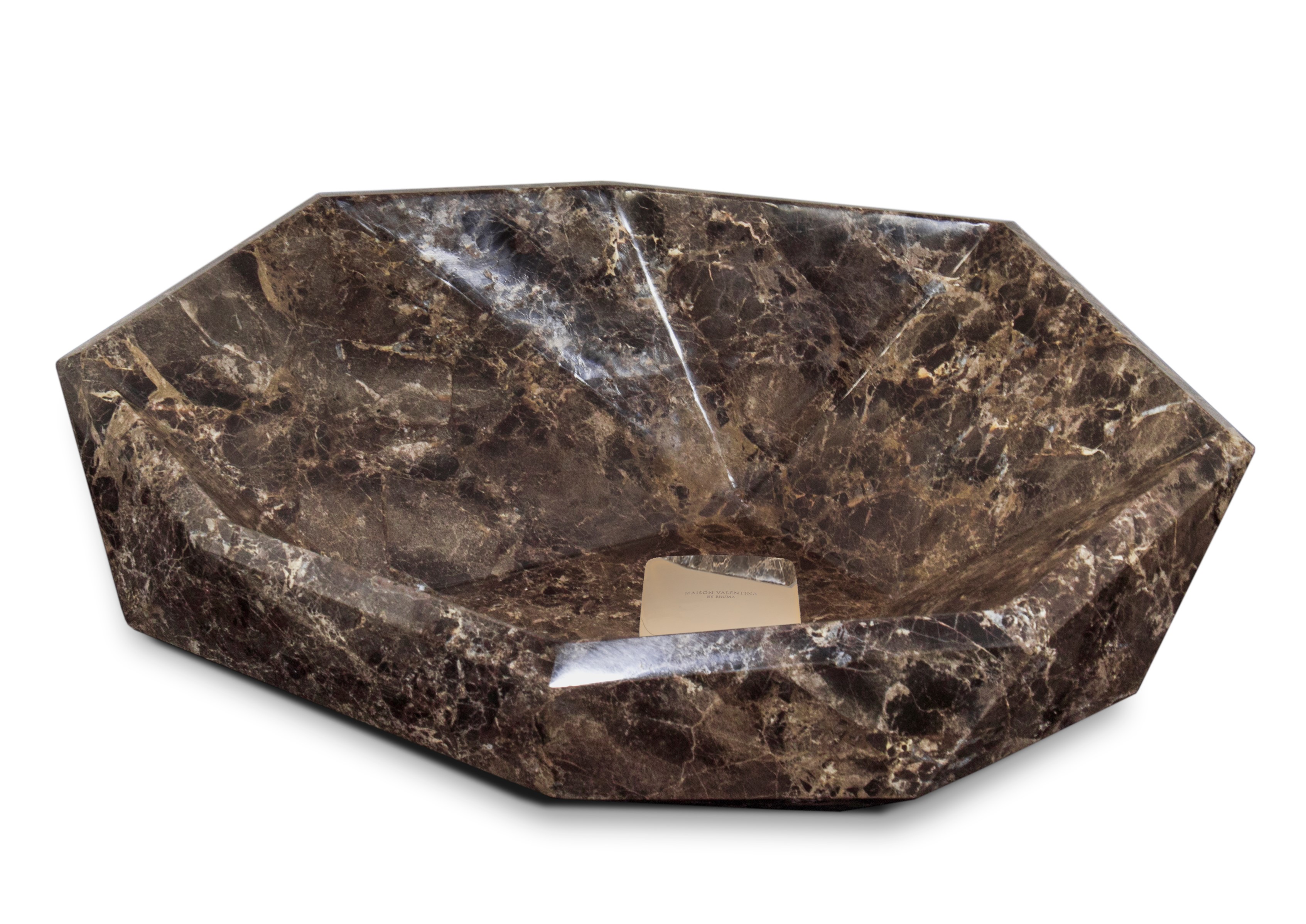 The Diamond Vessel Sink, handworked in Emperador Marble, is perfect to primp any bathroom. A special jewel creation of stunning elegance and originality. This marble vessel sink is thoughtfully designed to combine enduring quality and modern design