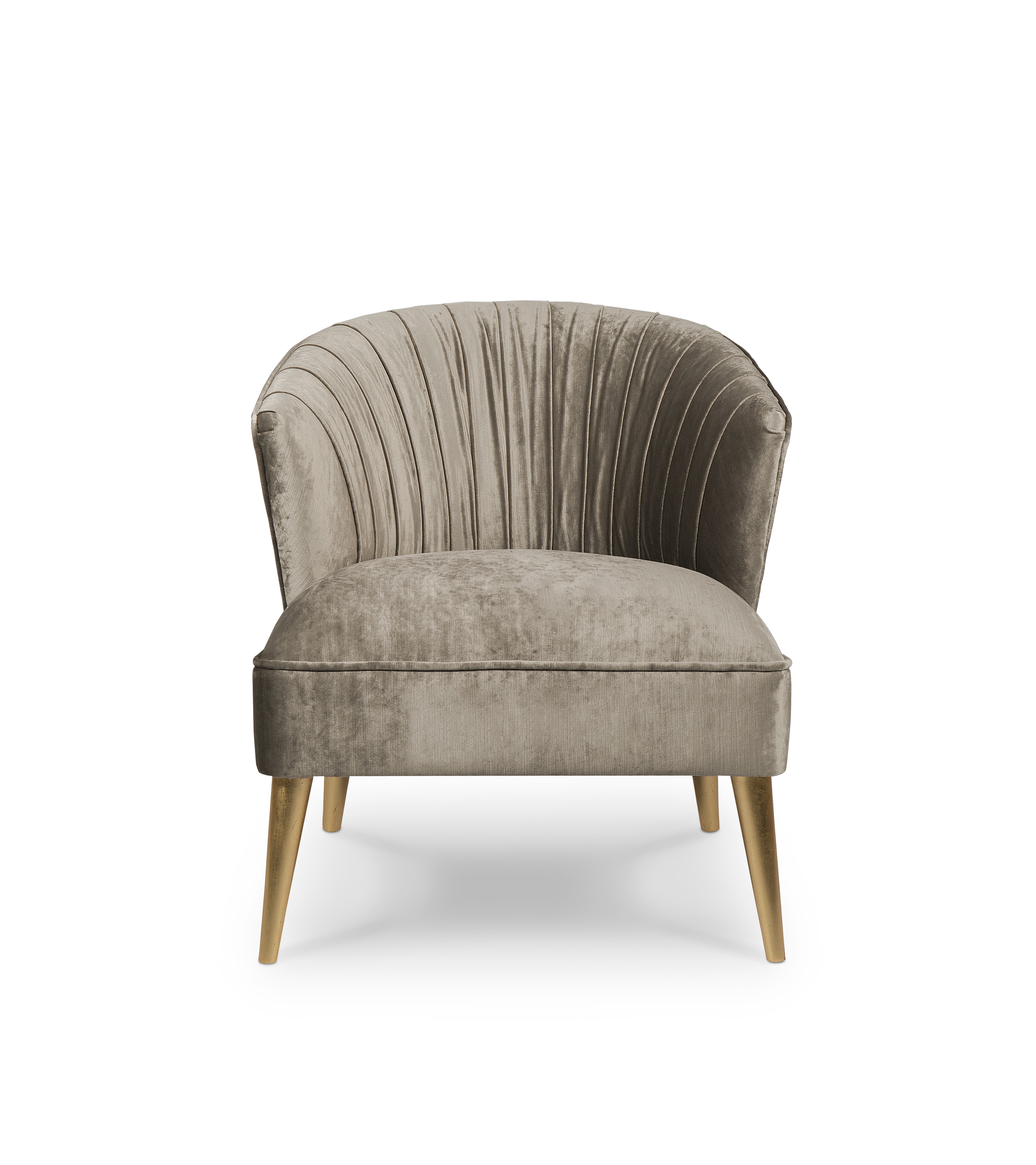 Nuka is a glacier in Alaska known for its sublime beauty. NUKA Armchair came to life inspired by this magnificent natural monument. Upholstered in velvet and legs in glossy gold leaf, this occasional chair with a curved back will make any living room set or bedroom design look sleek and chic.