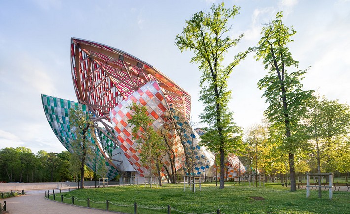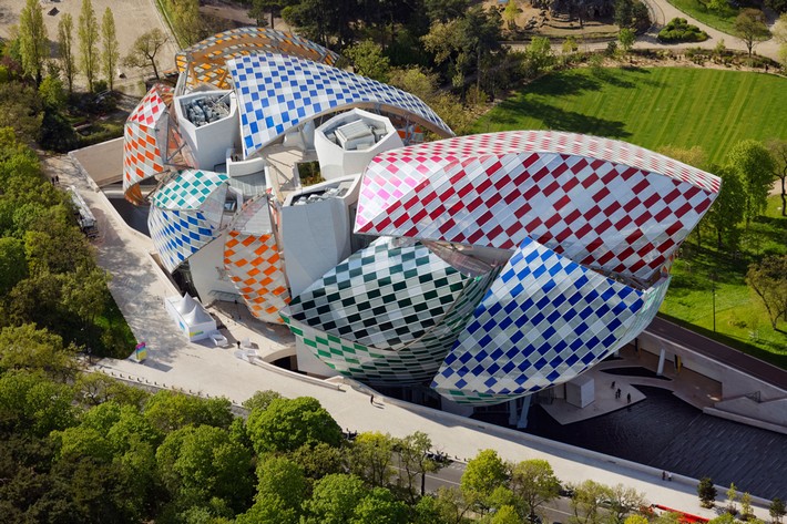 Few would look at a building as incomparable and architecturally complex as the Fondation Louis Vuitton and see a blank canvas. But in a sense, that’s how Frank Gehry arrived at inviting long-time friend Daniel Buren to create an in-situ work that casts new light – and a riot of colour – on the soaring volumes and oblique angles.