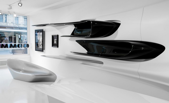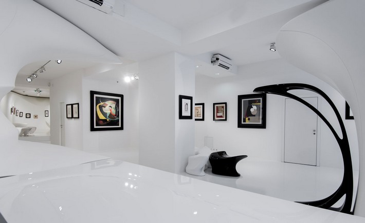 Seven years ago, Hadid transformed Galerie Gmurzynska into a fantasy in an ode to Kazimir Malevich, all hard, edgy lines. At the time, Hadid’s buildings were more angular too, a reflection of Malevich’s influence, but then she moved on to Schwitters and organic curves.