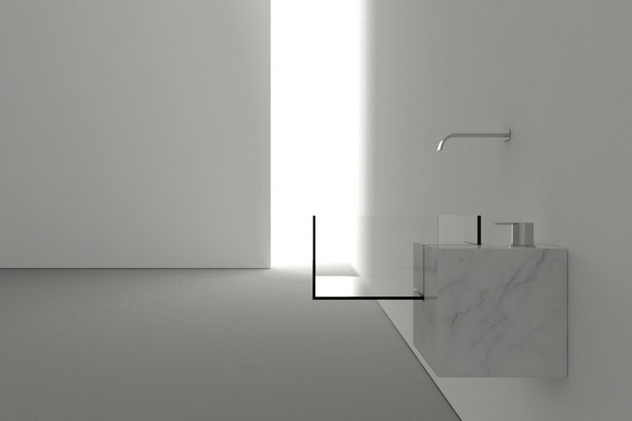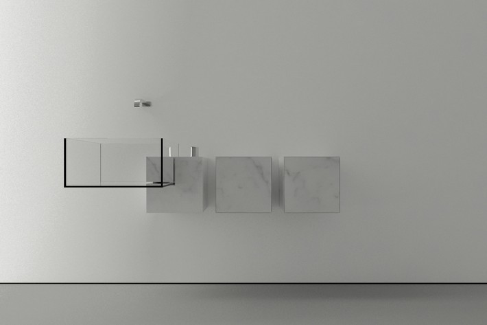 Free of any extraneous materials, the sink is reduced to its purest form, requiring nothing more than a transparent glass frame.