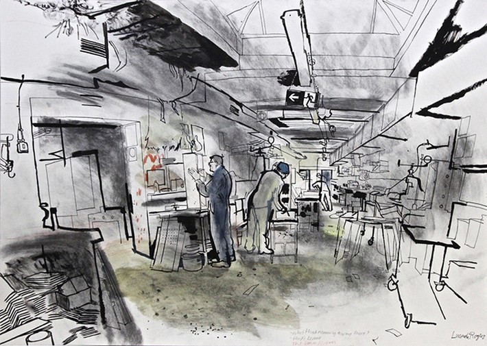 Lucinda Rogers will show a series of large works on paper that depict the workspaces, yards and skills of industrial manufacturing businesses and trades in Tottenham. The drawings will highlight the types of business that are directly threatened by Haringey Council’s plans to promote high-volume housing development in places where people work, which it describes as “restructuring the borough’s employment land portfolio”. The plans will put many active businesses at risk, jeopardising diversity and local jobs. Lucinda Rogers draws directly from life in ink, crayon and watercolour and often portrays working environments and parts of cities that are seldom seen. Along with others including Cass Cities and the Just Space network she is involved in combating the pervasive, short-sighted approach to regeneration that sees London consuming its own assets in pursuit of housing unit numbers. Engineers Heyne Tillett Steel will host the exhibition at their new premises in Clerkenwell.