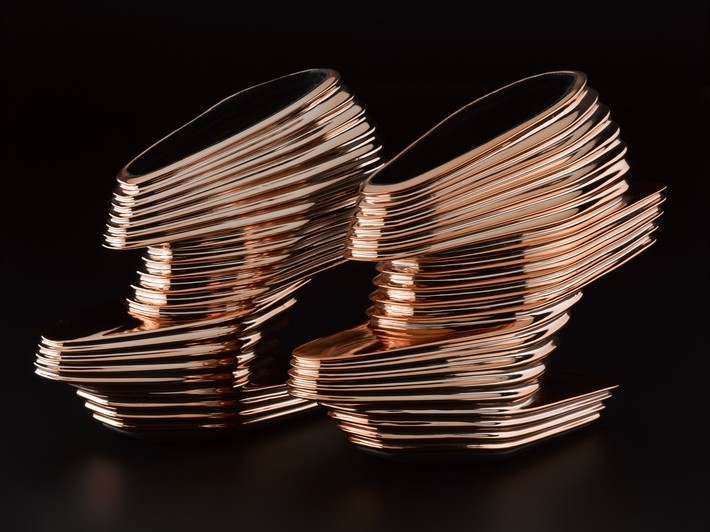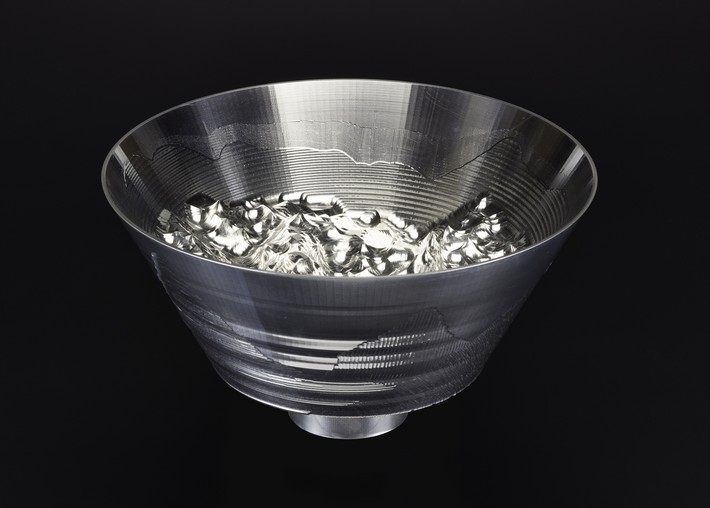 To honour Italian cyclist Fausto Coppi, who won the 1949 Giro d’Italia–Tour de France, designer Drummond Masterton milled a rollicking landscape into this aluminium bowl, titled Campionissimo.