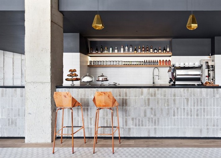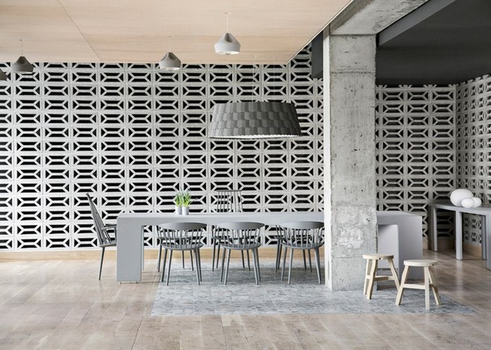 Embracing the elements of the inherited space, the architects used the existing cast-in-place concrete and cinder blocks as the framework of their design.