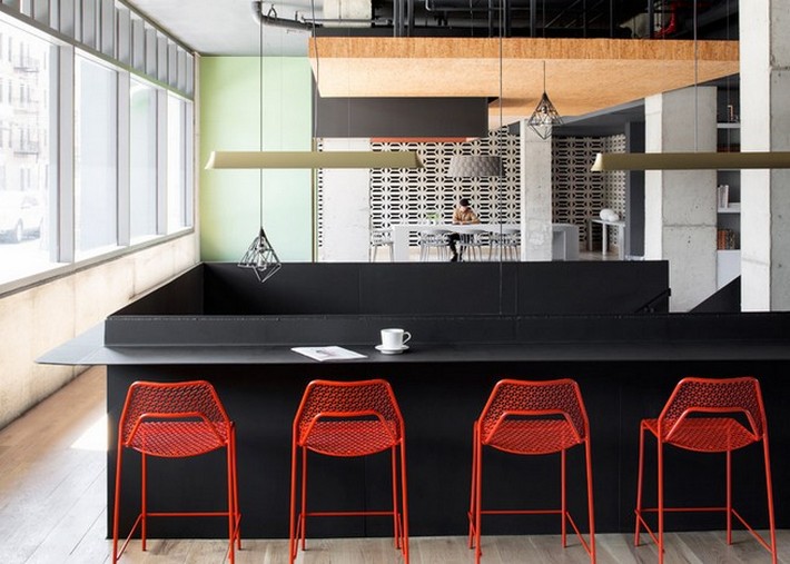 “On the ground floor we tried to erase the division and the hierarchy implied by the traditional reception desk,” Grzywinski said. “The check-in process capitalises on mobile technology to liberate that service from any particular piece of furniture.”