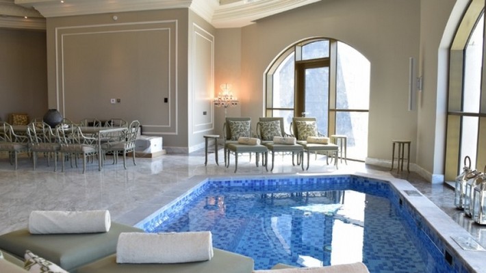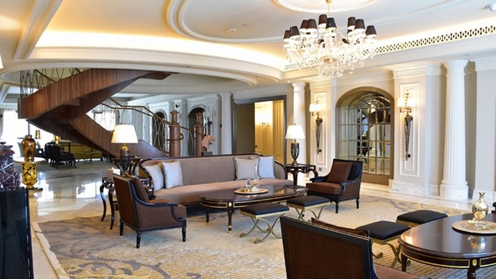 Spreading 913 square meters, the two-storey impressive suite features a vast living room, a formal 12-seater dining room, elegant study, relaxing lounge area and a spacious majlis that is ideal for meetings.