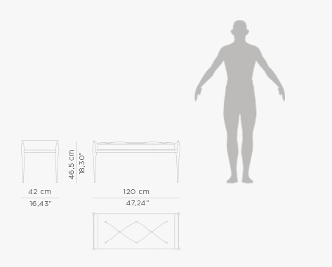 W:120 cm | 47,24” D:42 cm | 16,43” H:46,5 cm | 18,30"