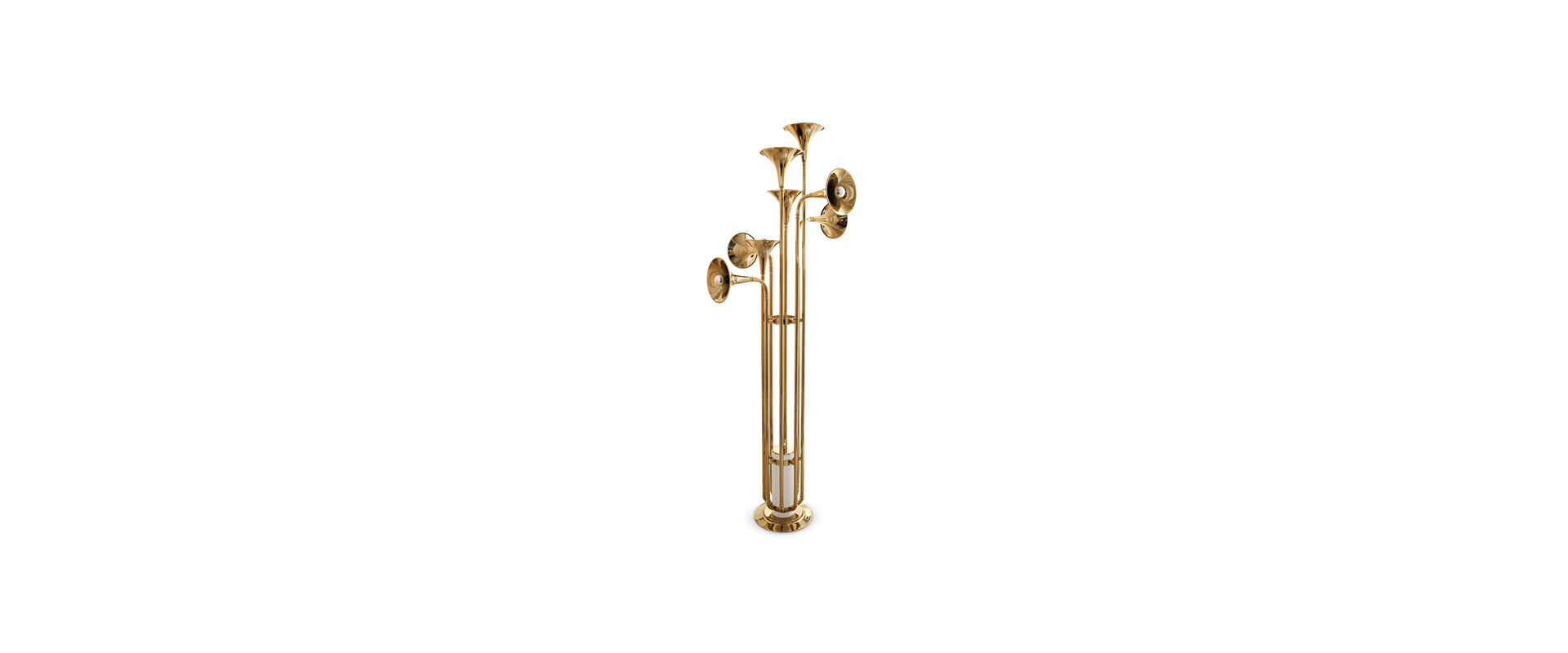 Botti is the newest version of Botti family: it embodies all the details of wind instruments, transporting us to a real music concert. Its structure is handmade in brass and gently covered by a golden mantle. This outstanding piece has eight spotlights which offer a soft lighting, attributing simultaneously a cozy and sophisticated ambiance to any setting.
