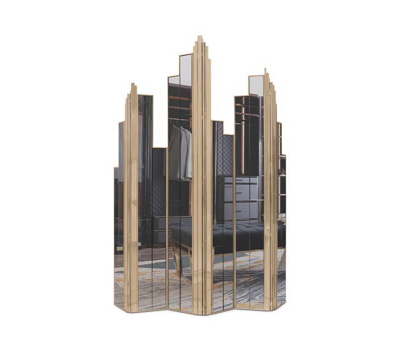 Empire screen is an amazing item for your bathroom design. This screen donates a deluxe feel to the most stylish spaces. The three panels are made in smoked mirror and gold plated brass. The Empire folding screen is not only important for decoration but these partitions are also convenient to divide spaces.