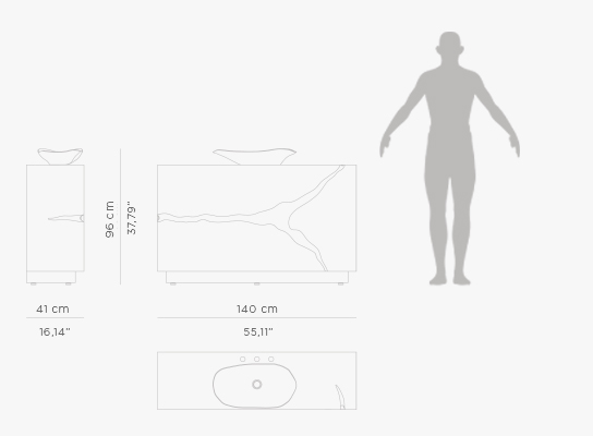 W:140 cm | 55,11" D:41 cm | 16,14" H:96 cm | 37,79"