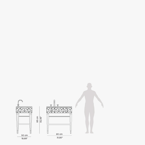 W:80 cm | 31,50” D:50 cm | 19,69” H:85 cm | 33,46”