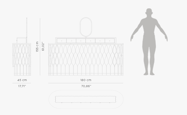 W:190 cm | 74,80” D:55 cm | 21,65” H:165 cm | 64,96”