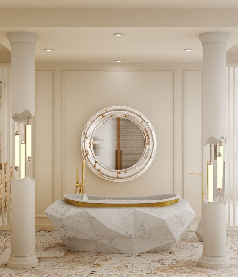 Indulge in contemporary luxury with this bathroom design, elevated by the Redleh II runner rug and the Koi Bathtub from Maison Valentina. This space harmoniously blends sleek lines with opulent textures. The Redleh II rug, featuring a striking design, introduces an element of artistic flair to the tranquil ambiance. This bathroom is the perfect fusion of functionality and visual appeal, where every detail has been thoughtfully curated to provide a spa-like retreat within your own home.